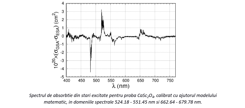 Procesele de absorbţie din stări excitate au fost identificate și caracterizate folosind metode de spectroscopie optică. Spectrele de absorbţie din stări excitate au fost înregistrate folosind un montaj experimental de tip pump-probe în dublă modulare. Spectrele de absorbţie din stări excitate au fost calibrate utilizând un model matematic simplu pentru a separa procesele de absorbţie din stări excitate de emisia stimulată și luminescenţă, precum și de absorbţia din starea fundamentală. Au fost determinate astfel secţiunile eficace ale proceselor de absorbţie din stări excitate.