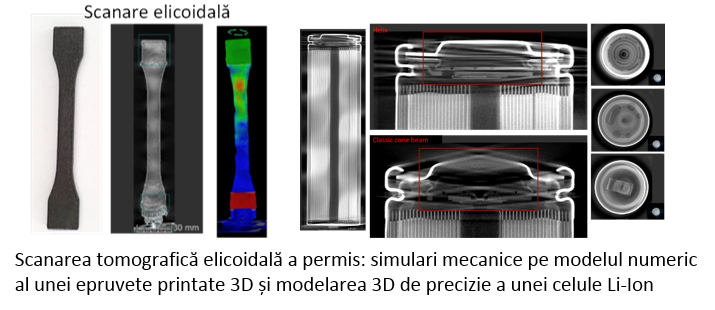 Un alt element de noutate implementat în această lucrare este reprezentat de aplicarea unui nou modul software pentru realizarea unor simulări mecanice (tracţiune, torsiune etc.) pe baza modelului CAD obţinut prin tomografie al epruvetelor printate 3D. Se poate considera că, prin multitudinea de informații obținute prin microXCT şi protocoalele de post-procesare dezvoltate se oferă posibilitatea optimizării metodelor de manufacturare aditivă, clasificarea produselor fabricate în industrie şi susţinerea alegerii materiei prime de calitate.