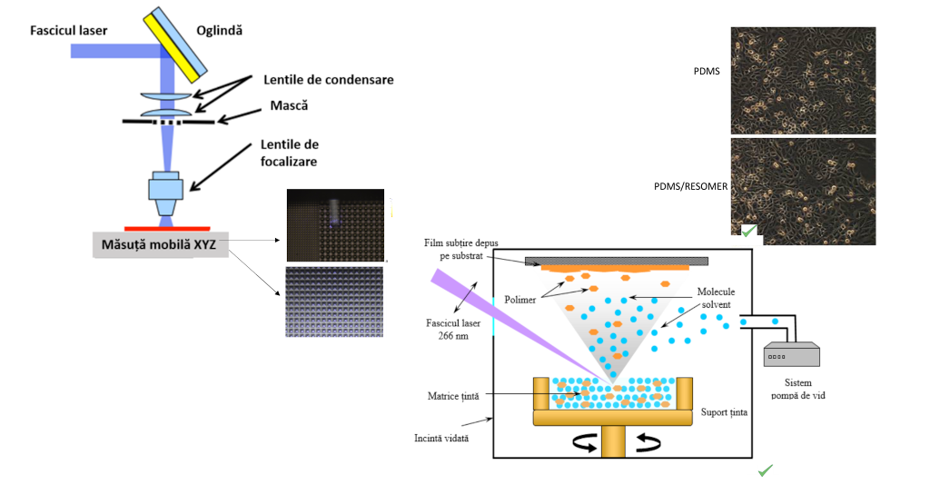 Titlu: „Dezvoltarea de bio-platforme biocompatibile micro şi nanostructurate pentru studiul efectului sinergetic al topografiei şi funcţionalizării (specific funcţionalizată sau complet funcţionalizată) asupra celulelor mamaliene – obţinerea şi analiza morfologică şi structurală de substraturi structurate prin texturare laser, MAPLE şi/sau prin transfer indus cu laserul –LIFT”