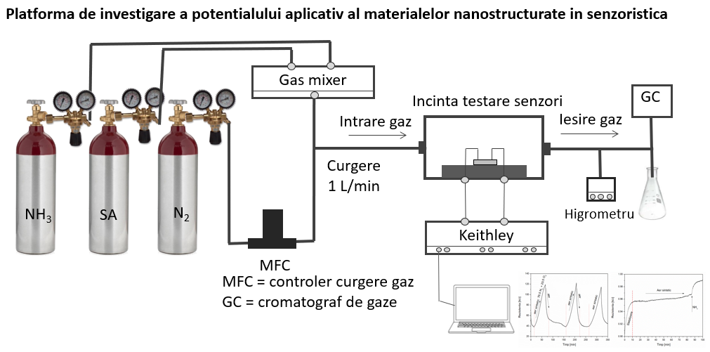 Sistemul experimental proiectat și construit în cadrul acestei etape a fost testat la evaluarea unui număr semnificativ de senzori, atât comerciali, cât și obținuți în laborator. Am demonstrat funcționalitatea acestei platformei și am dezvoltat o procedură pentru măsurătorile de senzori. Această platformă va fi folosită la măsurători de senzori realizați din diferite nanomateriale obținute în INFLPR. O astfel de platformă este utilă și pentru caracterizarea din punct de vedere electric al nanostructurilor sintetizate în laboratorul nostru (filme subțiri de grafene și grafene verticale, nanostructuri hibride din grafene/nanoparticule și nanostructuri tratate în diferite plasme), literatura de specialitate menționând materiale similare cu aplicații în senzoristică.
