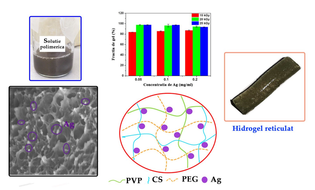 S-au optimizat condițiile experimentale astfel încât să se obțină hidrogeluri omogene, cu grad de elasticitate și capacitate de gonflare crescute în medii similare organismului uman. Apoi, hidrogelurile compozite au fost preparate prin încorporarea directă de NP cu concentrații diferite în amestecul polimeric optimizat și reticulate prin iradiere cu doze cuprinse în domeniul 15-30 kGy.