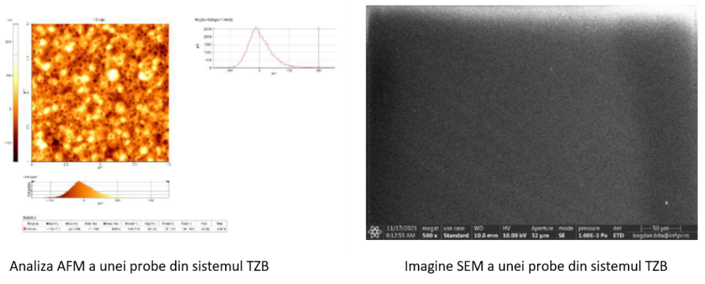 Microscopia de forță atomică, AFM a indicat faptul că probele sunt omogene, cu rugozități de 40-60 nm și că tratamentul termic trebuie efectuat în condiții controlate. Microscopia electronică de baleiaj, SEM, a confirmat omogenitatea depunerilor pentru toate probele.