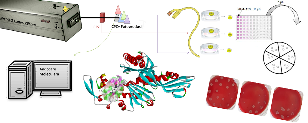 Determinarea posibilelor mecanisme care stau la baza activităţii biologice crescute ale cocktailului de fotoproduși din CPZ IR a fost realizată cu ajutorul tehnicii computaţionale de andocare moleculară. Au fost obţinute rezultate bune pentru activitatea CPZ NIR și IR atât în interacţie cu FtsA (esenţială în diviziunea celulară), cât și cu enzima FabL (aceasta are un rol esenţial, dar încă neexplorat, în biosinteza acizilor grași), având energia liberă de legare estimată (EFEB) bună. Rezultatele arată că probabil acţiunea inhibitorie mai mare a medicamentului iradiat este dată de acţiunea sinergică a fotoprodusiilor.