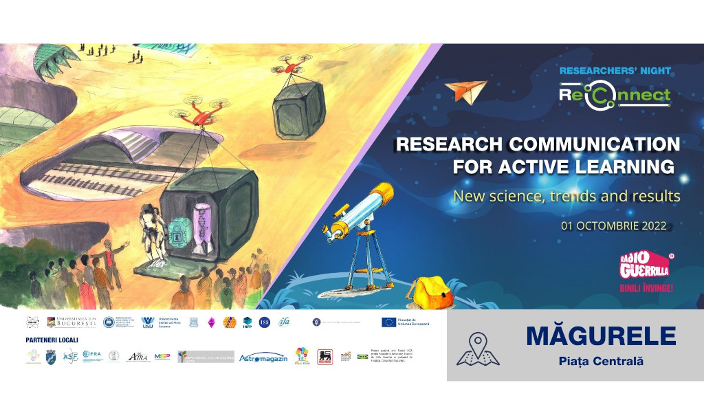 În perioada 30 septembrie – 1 octombrie, cercetătorii din consorțiul ReCoNnect invită publicul larg să descopere lumea extraordinară a științei prin zeci de activități destinate minților curioase de toate vârstele, în cadrul evenimentului Noaptea Cercetătorilor Europeni 2022. Anul acesta, evenimentul se desfășoară sub patronajul Ministerului Cercetării, Inovării și Digitalizării și prezintă activități dintre cele mai diverse în 19 de locații din țară, toate gravitând în jurul tematicii generale: „New science, trends and results”.