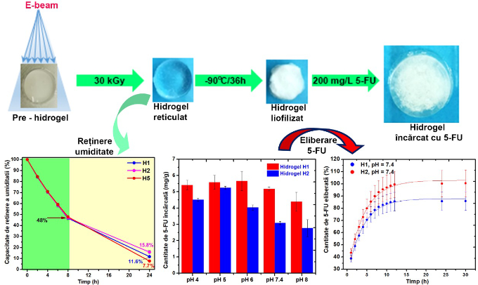 Rezultatele experimentale demonstrează că hidrogelurile obținute prin iradiere susțin încărcarea și eliberarea de medicamente anticancer și prezintă potențial pentru utilizare ca pansamente pentru tratamentul local al cancerului.