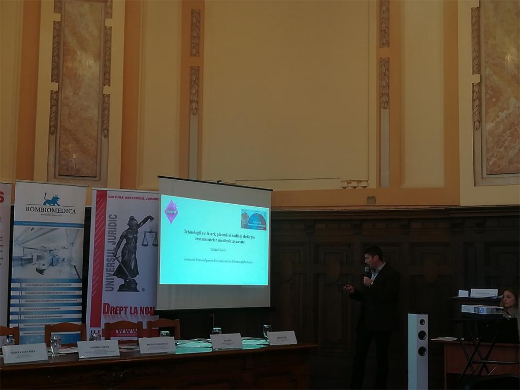 Din partea INFLPR a participat dl. Dr. Gabriel Socol, Șeful Secției Laseri, cu prezentarea „Tehnologii cu laseri, plasmă şi radiații dedicate tratamentelor medicale avansate”. În această prezentare, au fost evidenţiate rezultatele cercetătorilor din INFLPR cu aplicaţii în medicină şi farmacie, dintre care amintim următoarele: acoperiri nanostructurate ale implanturilor ortopedice biomimetice prin metode avansate de impulsuri laser; implanturi avansate biodegradabile de Mg / Mg cu protecție împotriva coroziunii și ecranare antimicrobiană prin acoperiri hibride; inovație pentru administrarea peptidei antimicrobiene prin intermediul nanoparticulelor pentru o performanță îmbunătățită a implanturilor medicale; procesarea materialelor cu ajutorul radiaţiei laser/plasmă pentru administrarea controlată de medicamente, dispozitive de detecţie, acoperiri cu metale antimicrobiene; laser micro și nano-procesare pentru fabricarea de microfluide; procesarea fotonică a biomaterialelor pentru ingineria tisulară şi fabricarea bio-nanomaterialelor.