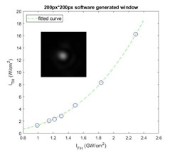 Inset: imaginea spotului fasciculului TH pentru IFH=2.29 GW/cm2 şi un timp de expunere de 0,96 ms.