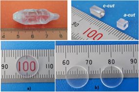 Abstract: A. Monocristale La0.64Gd0.41Sc2.95(BO3)4 – LGSB dopate cu 5.0 at.% ioni Nd3+ (Nd:LGSB) au fost crescute din topitură prin metoda Czochralski, pentru prima dată la nivel internaţional după cunoştintele noastre. Compoziţia materiei prime (compoziţia iniţială a topiturii), vitezele de tragere şi rotaţie, direcţia de creştere, precum şi rata de răcire a cristalelor până la temperatura camerei au fost optimizate, iar compoziţia chimică a cristalelor crescute a fost determinată ca fiind La0.721Nd0.046Gd0.452Sc2.781(BO3)4. Cristalele obţinute au dimensiuni de 10 – 12 mm în diametru şi 25 – 30 mm în lungime, sunt de calitate optică foarte bună, nehigroscopice şi stabile din punct de vedere chimic. Proprietăţile optic neliniare (NLO) şi spectroscopice ale cristalelor crescute au fost determinate, iar performanţele laser în regim quasi-continuu (durată a pulsului de 250 μs şi rata de repetiţie de 2 Hz) au fost de asemenea evaluate. Au fost investigate două probe, neacoperite antireflex, orientate paralel şi respectiv perpendicular pe direcţia axei c a cristalului, cu apertura de aproximativ 3.0 × 3.0 mm2 şi grosimi de 6.14 mm şi respectiv 2.96 mm. Pentru ambele probe s-a obţinut emisie laser la λem = 1061.97 nm (Δλem = 1.59 nm) cu eficientă foarte bună. Cea mai mare pantă a eficienţei (ηsa) a fost obţinută pentru oglinda cu transmisie T = 5%, iar valorile obţinute sunt de 71% şi respectiv 73% (în raport cu energia absorbită), pentru proba orientată paralel şi respectiv perpendicular pe direcţia axei c a cristalului, dovedind calitatea foarte bună a cristalelor Nd:LGSB crescute.